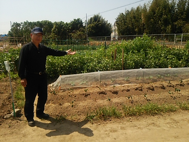 朝06:30に河津を発ち小田原市西大友のEさんのお宅にご主人の焼香に伺いました。その後大井町のIさんの農園を訪問しました。春野菜と夏野菜の定植で100坪の農園が満杯状態でした。玉葱の畦間には里芋を植えており、玉葱の収穫後にその土を里芋に土寄せして新しい畦を作るという効率的な栽培方法に感心しました。自然薯はカット薯の種イモを約20本を3月にそのまま定植しています。昨年の薯の1本種はもう蔓が1m近くに延びています。