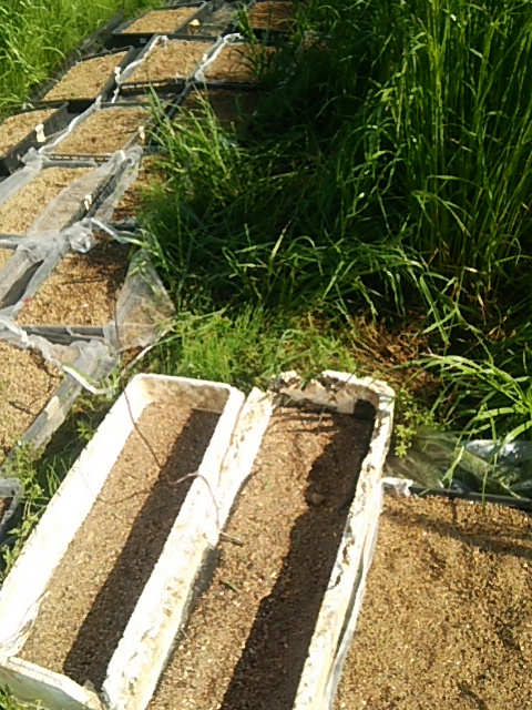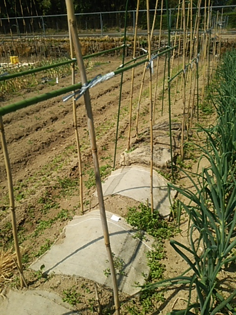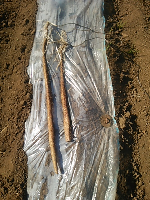 11:00過ぎに平塚に帰宅の途中で第一圃場に寄りました。約1週間ほど雨が無いため育苗箱の土が水を欲していました。20Lの容器2個分の灌水をしました。午後は風の為に捲れていた透明マルチをシートピンを刺しながら元通りに整形しました。