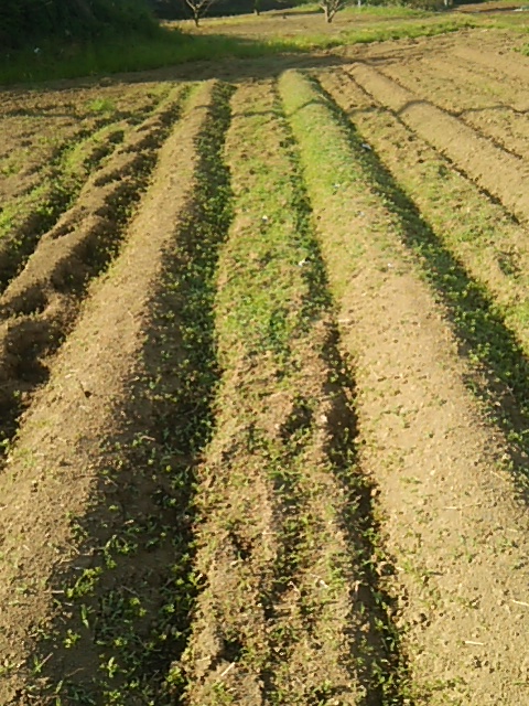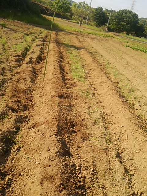 5月10日平塚第3圃場:草取りと加賀薯の発芽