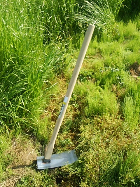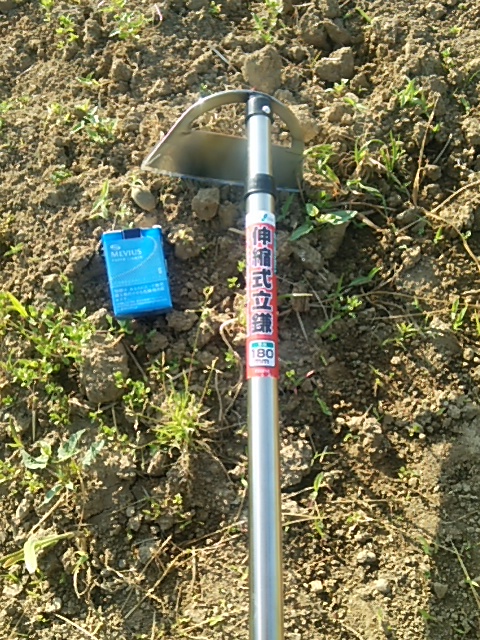 06:30-07:00。第3圃場の加賀薯の畦の上の雑草が伸びていたので伸縮型立ち鎌で除去しました。畦間の雑草は後日梳きこみの予定です。4月1日に定植した加賀薯が1本だけ発芽して5cmの芽が出ていました。