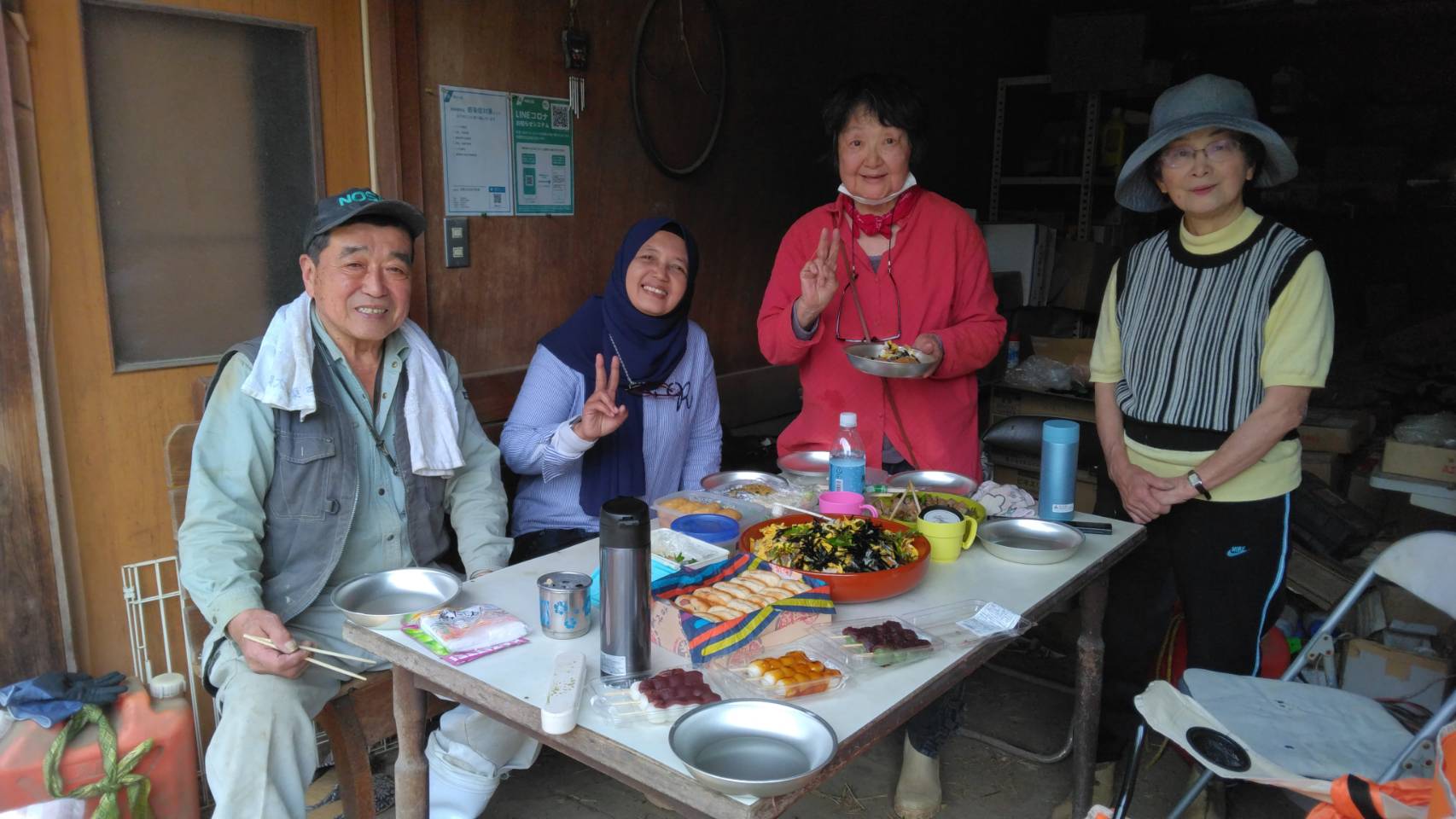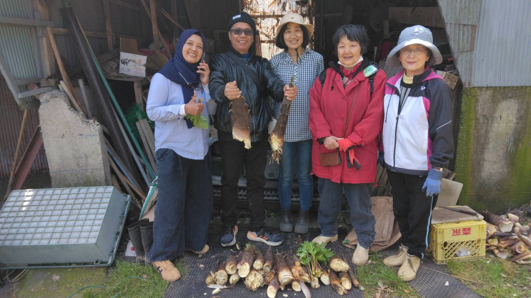 | 4/17インドネシアのゲストが筍掘り/Indonesian guests digging for bamboo shoots | | | | 先のインドネシアのご夫婦に筍掘りを体験して頂きました。掘ってからすぐに釜茹でして生の刺身の筍を召し上がって頂きました。インドネシアでも筍を食べたり、竹を使ったドームなどもありますが、この日はタケノコご飯他いくつかの和食料理を召し上がって頂きました。 The Indonesian couple mentioned earlier had the opportunity to experience digging for bamboo shoots. Immediately after digging them up, they were boiled and served as raw sashimi. In Indonesia, people do eat bamboo shoots and there are even bamboo domes, but on this day, they enjoyed bamboo shoot rice and several other Japanese dishes. |