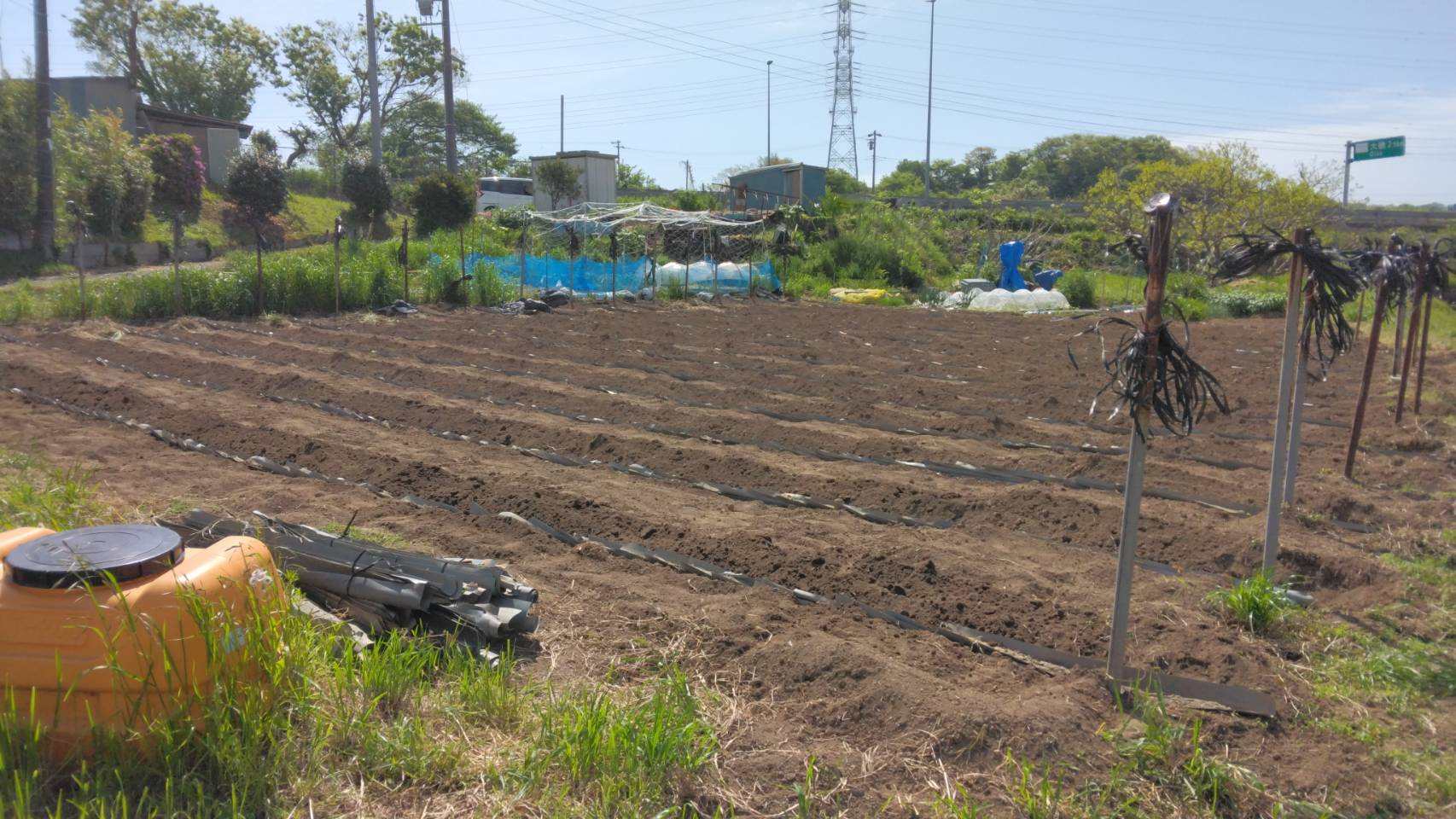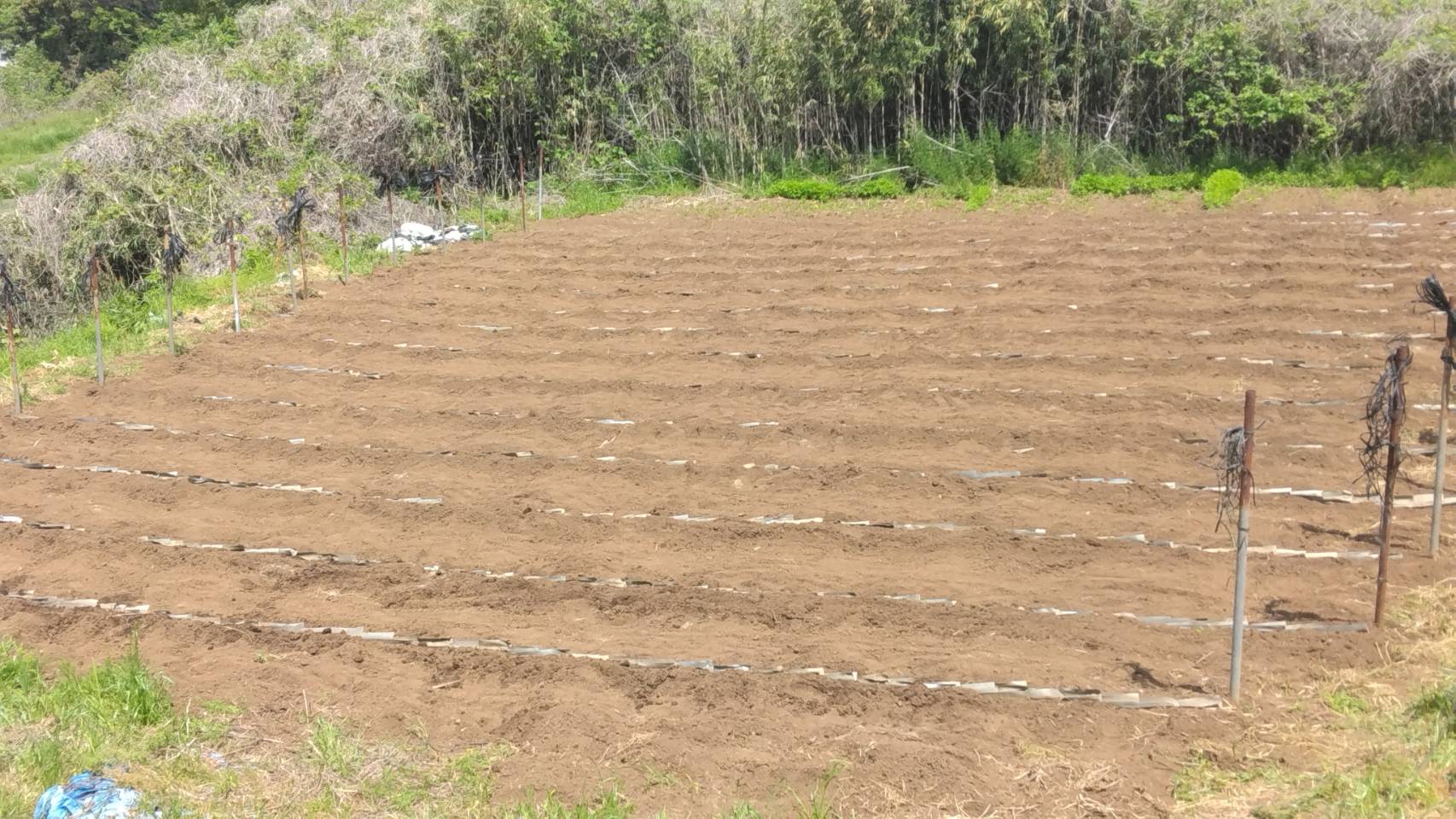 | 4/22自然薯畑の畔シート埋め/Burying the edges of yam fields with tarpaulins | | | 4/17から第二圃場始めた畔シート埋めですが、やっと16畦分の作業が完了しました。1畦あたり約1.5時間要します。まずはホッとしました。 Started burying the ridge sheets in the second field on April 17th, and finally finished the work for 16 rows. It takes about 1.5 hours per row. Relieved for now. |