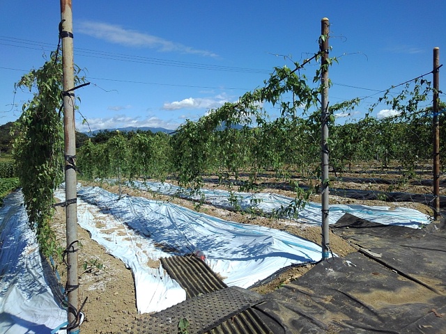 来週から梅雨明けとの予想で昨日から追肥を実施しました。コメリHCで購入した化成肥料8-8-8を50g/株の計1,000kgを第一、第二、第四圃場に追肥しました。