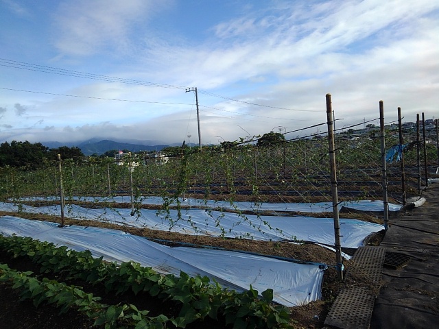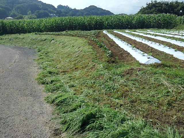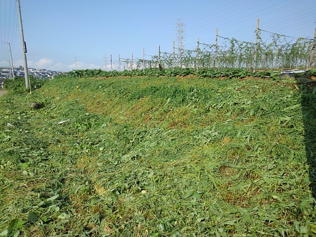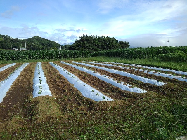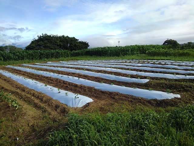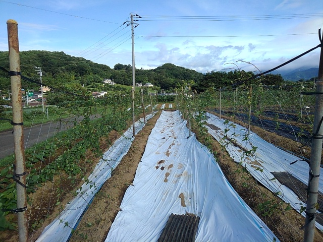 最大のイベント七夕祭りガイドを終わってやっと通常に生活に戻りました。さっそく自然薯圃場の蔓の養生を実施しました。昨日の強風で畦間の防草シートが数か所捲れていましたので修復しました。順調に生育しておりホットしています。第3圃場の黒豆もしっかり活着していました。