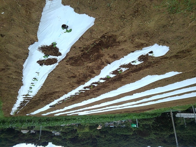第5圃場(新幹線脇)に黒豆を定植しました。約150本。