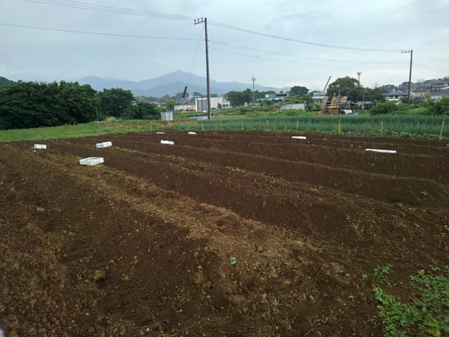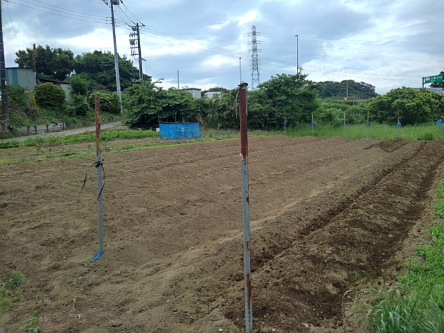 仕込んでいた自然薯の大半の種イモが芽だしして定植しました。第2圃場の約600本と第4圃場の約500本をほぼ1日で定植できました。