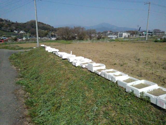 朝5:30に平塚を発ち河津に07:30に着きました。畑に種芋を置き(日干し)、軽トラ市の会場にて自然薯を販売しました。人出は昨年暮れの市より少なかったですが、大半の自然薯が売れました。午後はWさんとUMさんと3人で育苗箱への種イモの仕込みを行いました。