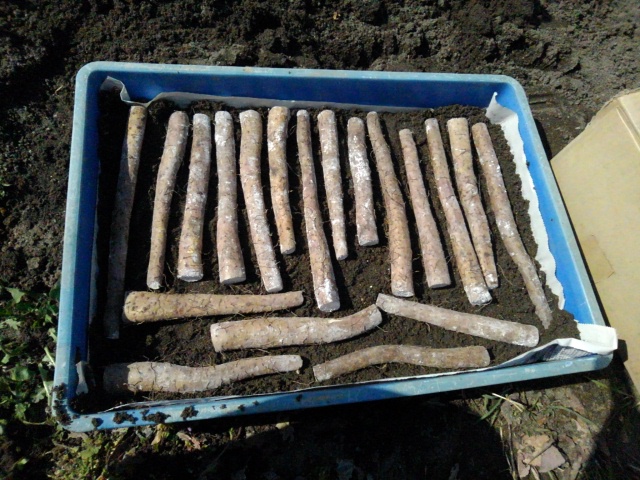 午後、浜田牧場さんの2トン車で大磯の高島建材の山砂2㎥(12,000円)を運び圃場脇に山盛りにしました。帰宅したら北茨城:鈴木農産より60kgの種イモが届いていました。さっそく仕込みに取り掛かりました。各薯を60gにカットして日干し、そして消毒まで。育苗箱の仕込みは明日からです。第二弾の80kgの種薯は来週末の予定です。3月末まで多忙の日々が続きます。
