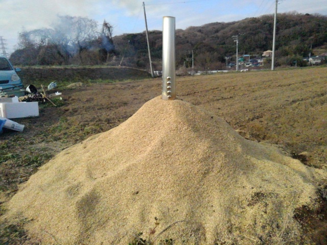 燻製器をネット注文して昨日届きました。さっそく、浜田牧場さんから分けて頂いた米殻を第一圃場の畑で燻製にしました。一日がかりです。この燻製米殻を畑に混ぜると自然薯もネコブセンチュウーの被害を防げるそうです。今後も第二圃場、第四圃場の自然薯畑にも応用する予定です。