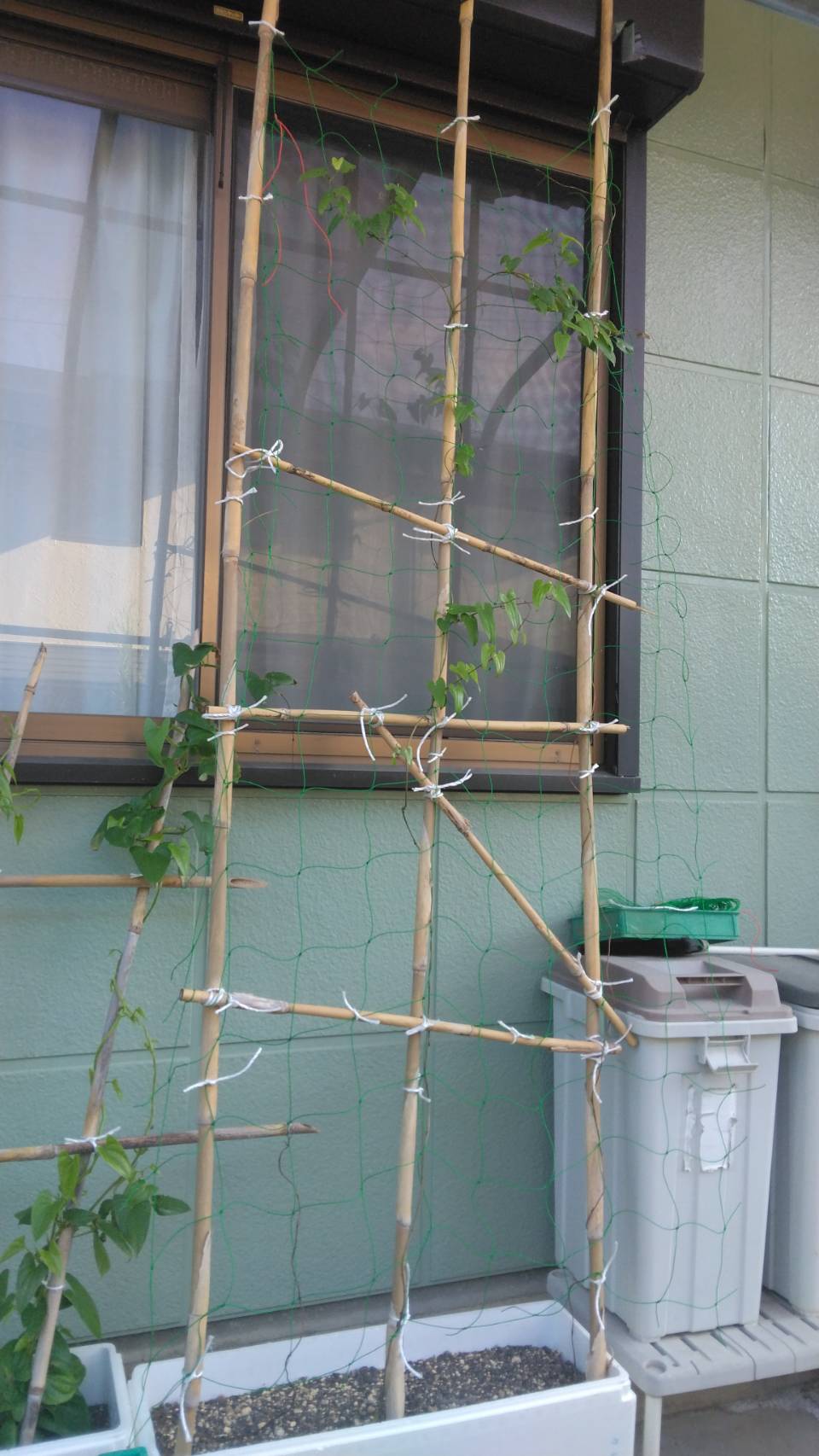 | 8/9自然薯カーテン/Japanese yam curtain | | | 深型プランターに自然薯種芋を三個そして別のプランターにイチョウ芋3個を埋めてカーテン代わりに植えてみました。猛暑でほぼ毎日水やりをしていますが、蔓葉の伸びは思ったほどではありません。どの位の薯が採れるか楽しみではあります。 Planted three Japanese yam seed potatoes in a deep planter and three ginkgo potatoes in another planter to use as curtains. It's been so hot that I've been watering them almost every day, but the vines aren't growing as fast as I'd hoped. I'm looking forward to seeing how many potatoes I can harvest. |