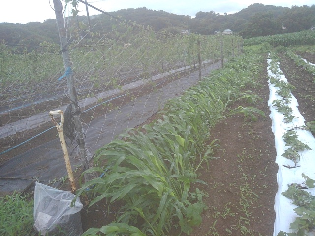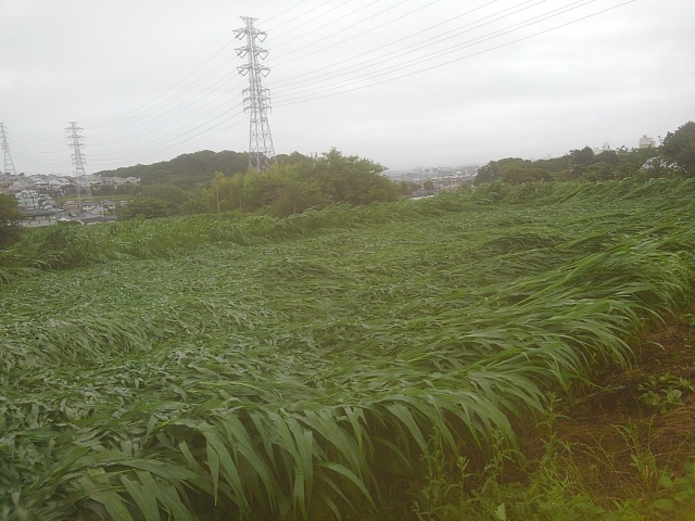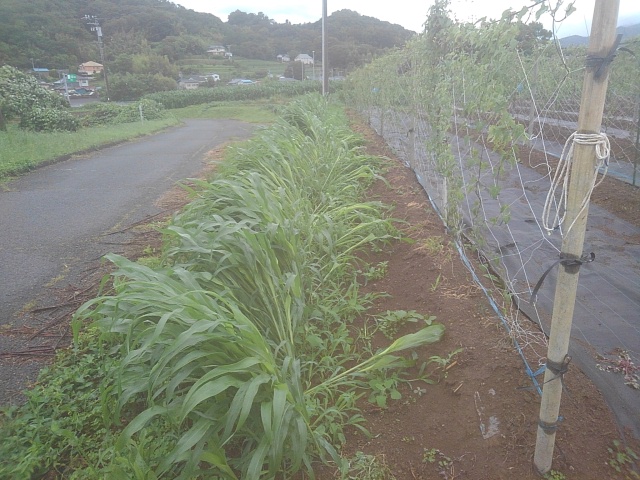 | 6/29防風用のソルゴーが一部倒伏/Sneak down of partial sorghum | | | | 昨夜からの雨と北風で一部のソルゴーが倒伏しました。このソルゴーは今後の台風に備えて自然薯圃場の防風の為に植えたものです。しっかりと根を張らずに育ちだかりのソルゴーにとって4-5m/秒の北風に耐えられなかったようです。別の農家の隣の畑のソルゴー(緑化肥料にするために植えたもの)も大半が倒伏していました。 Some sorghum fell down due to the rain and north wind from last night. This sorghum was planted to prevent wind in the Japanese yam field in preparation for future typhoons. It seems that the sorghum, which had grown up without rooting firmly, could not withstand the north wind of 4-5 m / sec. Most of the sorghum (planted for greening fertilizer) in the field next to another farmer also fell down. |