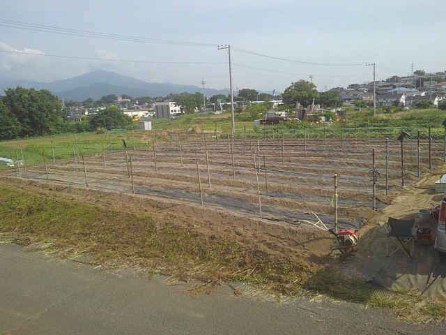 5/26自然薯圃場のネット張りと防草シートの布設完了/Completion of netting and laying of weed-proof sheets in yam fields | ||||