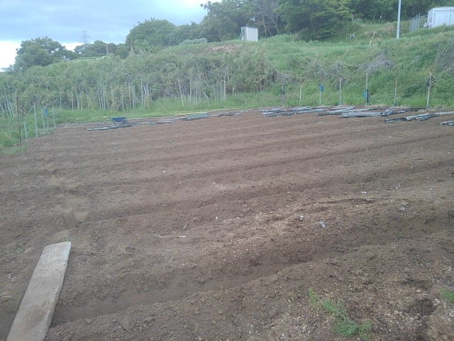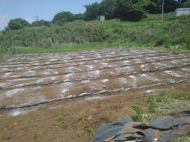 5/5第一圃場の畔シートの埋め込み開始/Start embedding the shore sheet in first field |