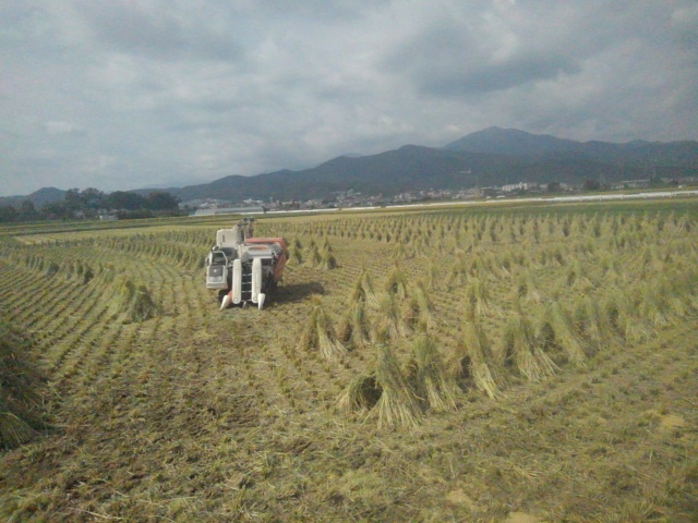 恒例の浜田牧場さんの稲刈りが始まりました。11:00-16:00で計2反の稲刈りが終わりますが、残った藁の藁立ては翌日に回ります。脱穀したコメは乾燥機に入れられ翌日に乾燥して玄米化します。計6反の稲刈りは10/6に完了しました。が、一部の藁は雨の為藁立てが終わっていません。別途晴れたら藁立てを実施の予定です。