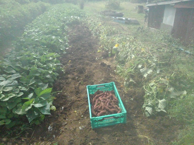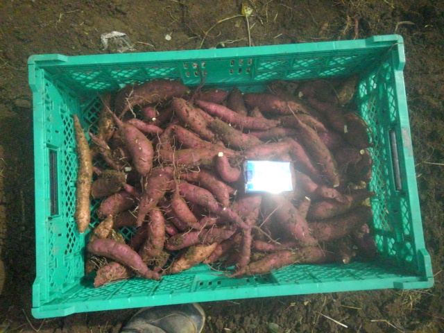 第五圃場のサツマイモの試し堀りを実施しました。約20本ほど掘りあげました。まだ少し小さいですが明日のKSGGのイベントの下見の際に焼き芋として使用します。