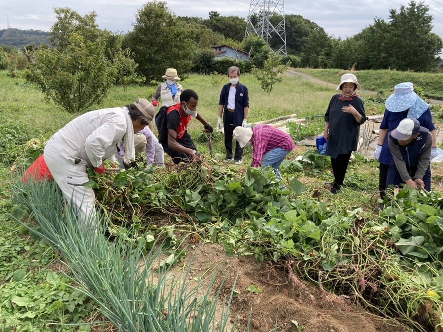 KSGGから5名そして星槎大学留学生が1名参加してくれました。浜田牧場さんで新鮮な牛乳を試飲して牛舎の見学、若牛の放牧などを見学しました。その後、平塚英会話愛好家3名が焼き芋を作って待っていたサツマイモ畑に移動してランチ。三密をさけながら各自距離をとって持参した弁当と飲み物を頂きました。その後に隣のNさんの畑のサツマイモを皆さんで掘ってもらいました。
