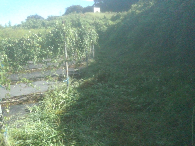 クボタから草刈り機が修理されて帰ってきました。早速第一圃場の周囲の草刈りを実施しました。畦間は防草シートを布設してあるので草刈りは不要です。