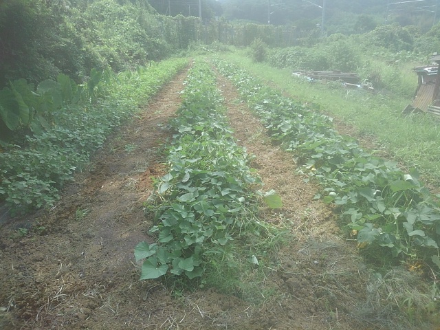 第三圃場と第五圃場のサツマイモ畑の畦間の中耕を実施しました。(第五圃場は2回目の中耕) すっかりきれいになりました。