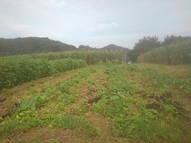 第五圃場と第三圃場のサツマイモ畑に追肥をしました。化成肥料:8-8-8と馬糞と牛糞を施肥しました。