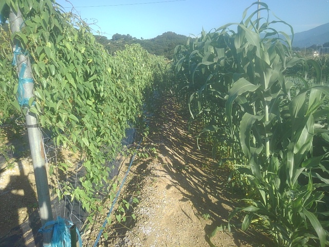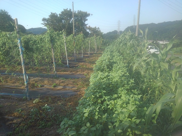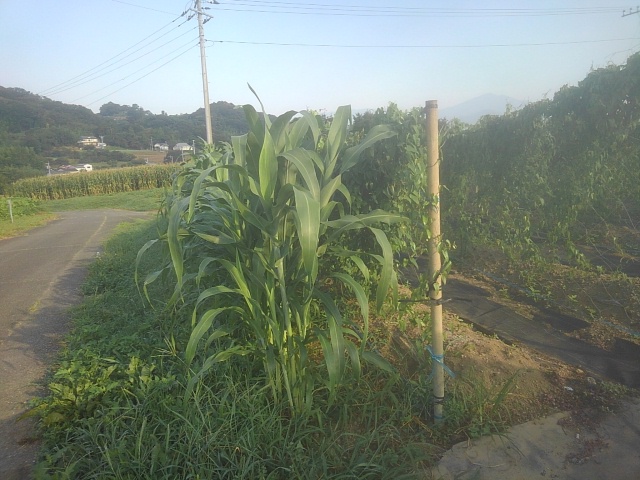 防風を兼ねた緑肥飼料のソルゴーが大きくなってきました。昨年の台風で倒伏した第四圃場の周辺に植えたソルゴーです。北側、西側そして北側に植えたソルゴーですがすっかり大きくなりました。今年の台風の強風に耐えてくれることを期待します。