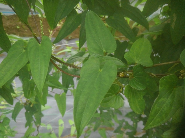 相変わらず雨の毎日です。圃場の様子を見てきました。茎葉は茂って中には花を付けているものや小さなむかごを付けているものもあります。