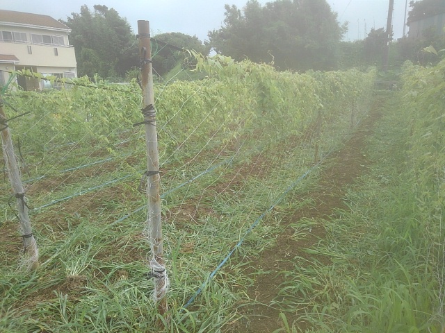 長梅雨で面倒を見れなかった第二圃場の草刈りと畦間の草取りをしました。この畦間には防草シートを布設する時間が有りませんでした。草取りが手作業で大変でした。3日かかりました。