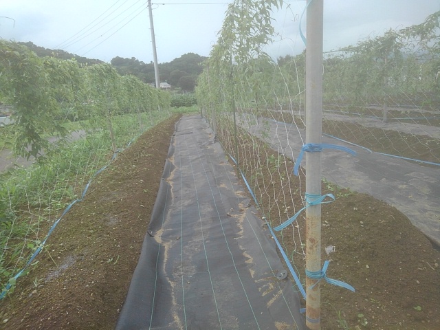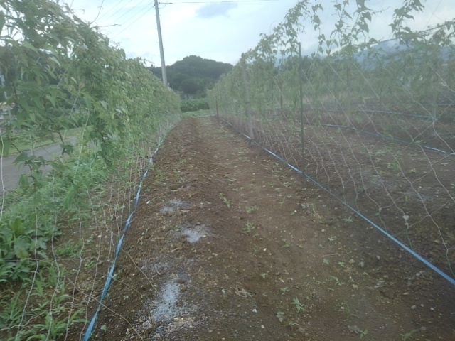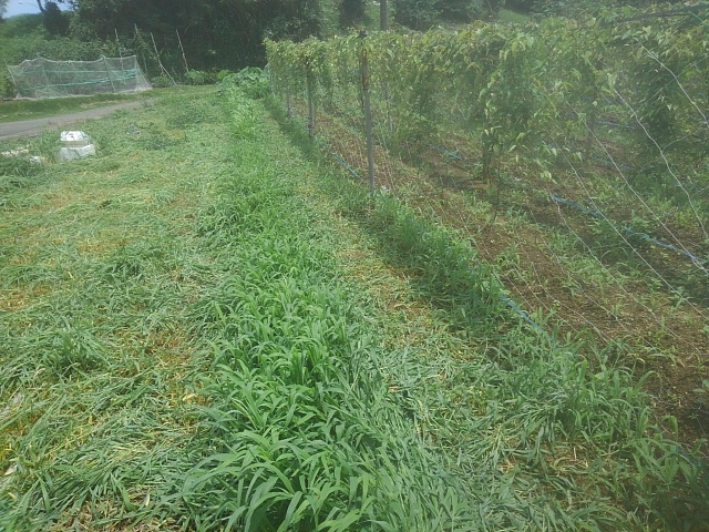 今年は防草シートの布設をためらっています。その為1週間に1度の割合で畦間の畦の雑草を除去しています。1圃場で3-4時間ほどかかります。そのうちに一部の畦間に防草シートを布設して出来を比較してみたいと思います。