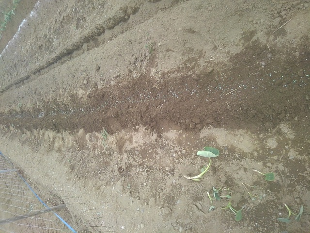 第二圃場と第四圃場の周囲にソルゴーを植えることにしました。浜田牧場さんから頂いたソルゴーの種を第四圃場の自然薯の周囲3辺に撒きました。これは台風時の防風の役割を果たして貰うためです。また、牛の飼料にもなるので一挙両得です。ソルゴーは本来緑化肥料にするために植えられます。近所の畑にもそのためだけに植えている農家があります。 サツマイモ名人のNさんが第四圃場の北側の3畦に自身で育苗したサツマイモの苗を植えています。