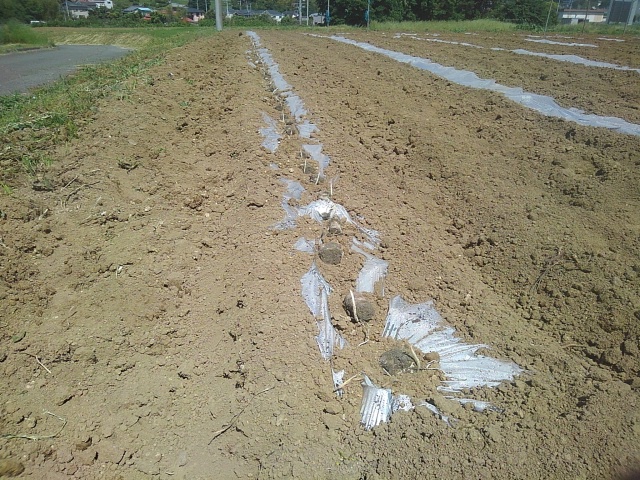 今うがピークです。第二圃場と第四圃場に1日で約400個定植しました。流石に疲れました。