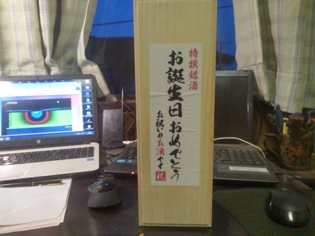 21日に植えたモロヘイヤがやっと芽を出し始めました。誕生祝として娘から獺祭が届きました。