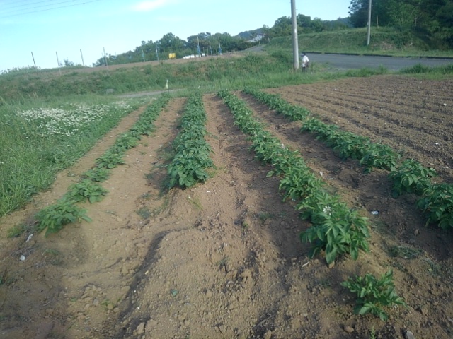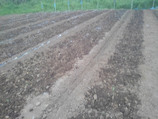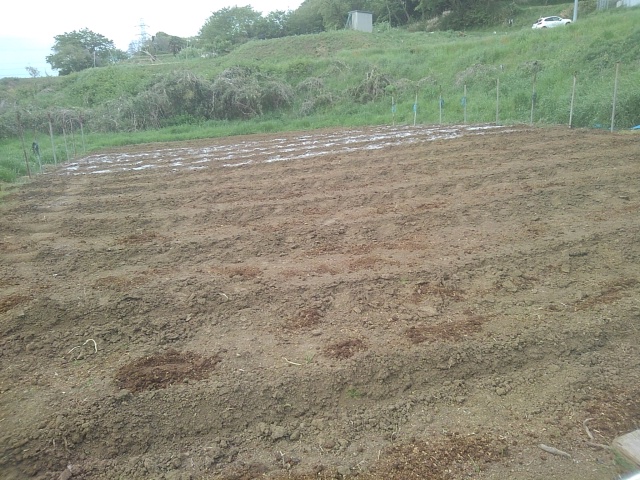 第一圃場の土壌が痩せているので近所のホース倶楽部から馬糞を貰って畦間に撒きました。その後簡易耕運機で耕運しました。