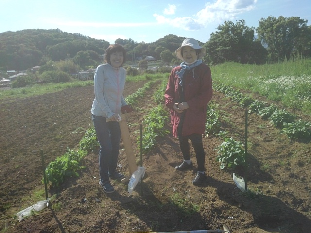 平塚英会話同好会の人たちと草取りと土寄せを行った後に英語チャットを楽しみました。(EFC--English Farm Cafe)