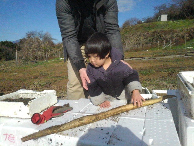 都内から娘一家が恒例の餅付き他で帰省してきました。私は下の孫娘を連れて長男と自然薯を掘りに行きました。