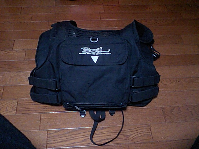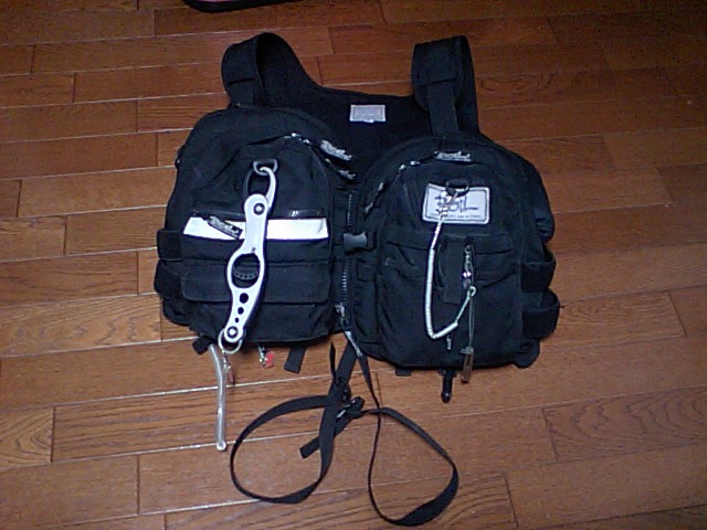 【フローティングベスト】 このフローティングベストは、もともとバスのボートもしくはウェーディング釣行のために約5年前に購入。ボート屋さんや船宿で貸し出しているオレンジ色のにくい奴ではちょっとかっこ悪いのでバスを再開してからすぐに買いました(爆)