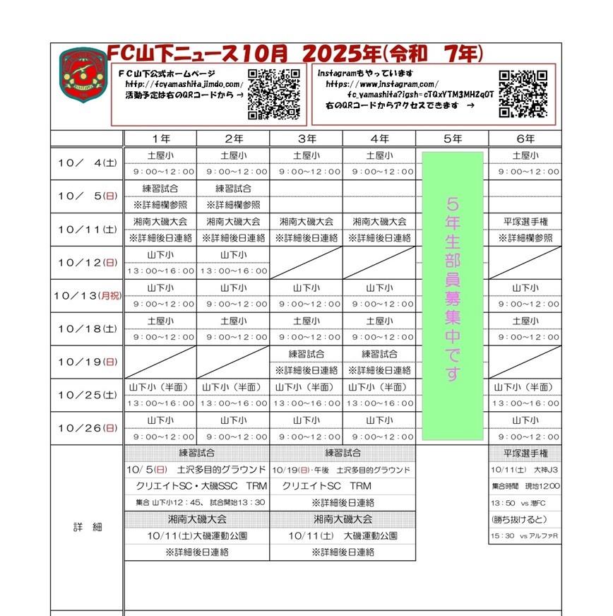 『FC山下公式ホームページ』『平塚市中学生サッカーリーグ』『湘南ベルマーレ公式サイト』『ひらつかスポーツナビ』『神奈川県サッカー協会』『日本サッカー協会』のホームページをリンクしています。左側の下方リンク欄にあります。見たいホームページをクリックしてください。