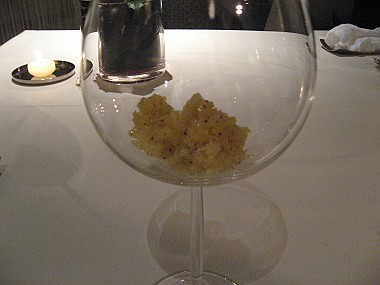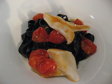 ・オレンジを練りこんだ冷製タリオリーニ・・・EXバージンオリーブオイルのジェラート添え