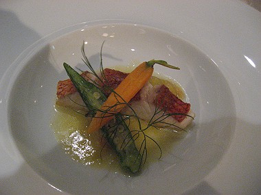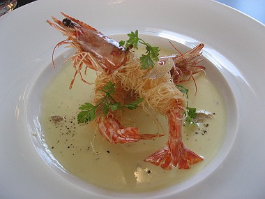 ・カダイフで包んだ車エビのフリット・・・サマートリュフと共に(写真中)