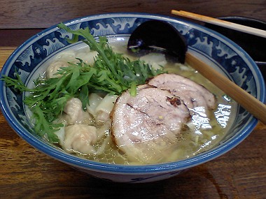 ラーメンのひと口目のスープの味は絶品!! 今まで食べた事のない新鮮な美味しさにびっくり! 麺も弾力があってシコシコ!一緒に入っている春菊もとても香ばしく、ワンタンもたっぷり大満足〜♡ さすが、長時間並んだ甲斐がありました〜!!