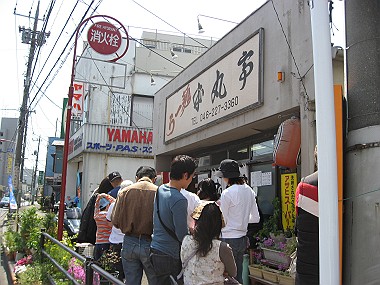 塩ラーメンで有名な、『本丸亭』〜☆ 長男はもう何度か食べているのですが、こたぱぱとままは初めて〜! ふだんから、店の前の行列を車の中から眺めていたので、今日はもちろん並ぶこと覚悟!! 着いたのがちょうど12時で、しかも土曜日〜 案の定、すごい行列!!ため息が出ます〜^^;