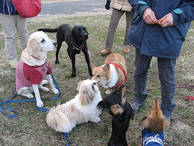 寒くても、わんこたちは元気いっぱい! 後から、COCO&COCOママ、レナ&レナママも来て、 久しぶりに、5匹+4人と太郎ちゃん&ママとで、 賑やかにボール遊び〜♪
