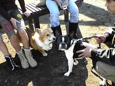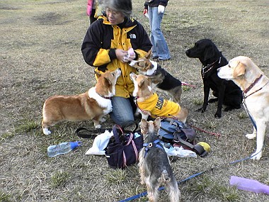 COCOママの車で「カミツキーノ」到着! ピンクのエプロンがとっても良くお似合いの? オーナーシェフレナパパと、可愛いレナママ、 そして看板犬のカミツキ・・・? いえいえ噂の美犬、レナ嬢がお出迎え〜〜♡♡