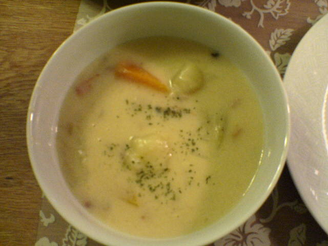 クラムチャウダーはとっても濃厚!じゃがいものソテーは シンプルな素材なのに、なかなかハマる美味しさっ! うちでも作ってみたいと思いました〜 ペンネは、ほんとうはかなり辛いのですが、 その辛いのが苦手のこたままのために、 辛味調節までして頂きました〜恐縮ぅ〜^^; COCOママのミートグラタンは2回目ですが、 何度食べてもやっぱり美味しいっ!!