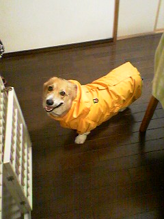 黄色いレインコート姿の、 なんと可愛らしいことっ!♡