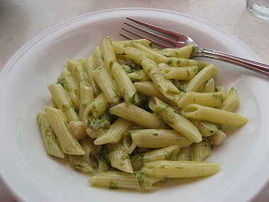 ジェナママのメインはタコと枝豆のペンネラグーソース♪