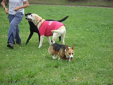 そんなコーギー牧場?と化したところでも、 ジェナちゃんとしーちゃんは、黙々とボールを追って走ります! 素晴らしい集中力!☆ しーちゃんは、草を食べたりしてママに怒られていたけれど、 そのしょんぼりとうなだれた姿が、これまた可愛い〜♡