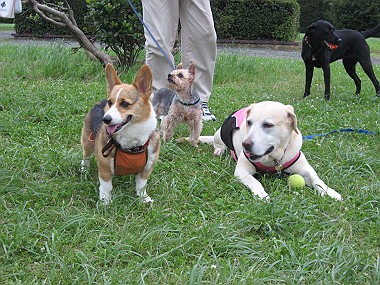 3時半!公園に着くと、ナビちゃん一家の姿が〜 いつものエリアで飲み水の用意をしたりしていると、 COCO&ママも到着! ナビママたちもこちらに来てくれて、久しぶりにお喋り〜♪ ナビちゃん一家はナビ・ピノ・ミクの親娘3匹コーギーです♡ 1匹だけでも大変なのに、3匹も!!@@ いつも感心することばかり〜 ジェナシー&ママも徒歩で到着〜♪ いつの間にかおこちゃまコーギーの空ちゃんも加わって、 何だか周りはコーギーだらけ〜〜!