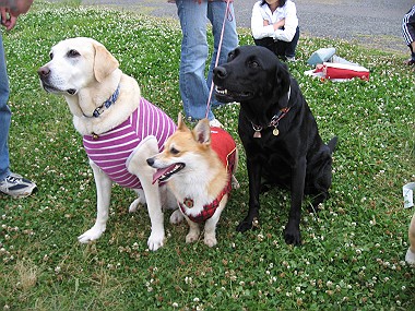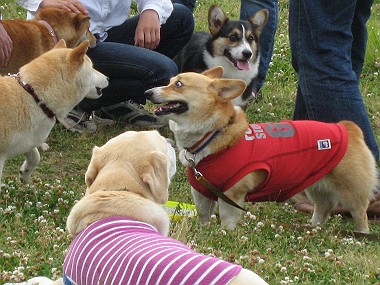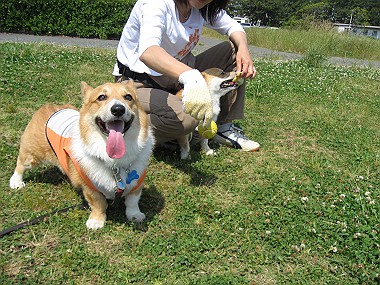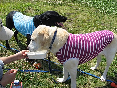 始めのうち元気に駆け回っていたわんたちも、 さすがに暑さでアヘアヘ〜汗 COCOちゃんは、ママたちの影を探して涼んでいました〜笑