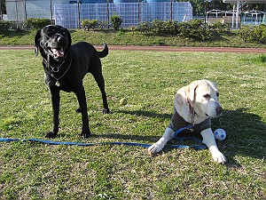 待ち合わせの午後1時に運動公園に行くと、3わんちゃんを連れたはなママが待っていてくれました。