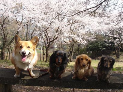 写真も綺麗な桜をバックに、4わんお揃いでパシャ♪