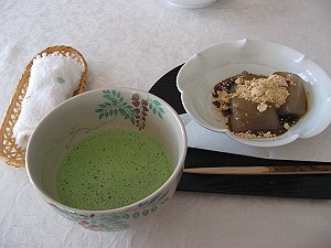 美味しいお抹茶と蕨もちをご馳走になりながら、